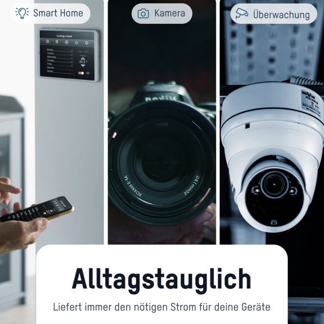 Der Akku ist ressourcenschonend, recyclebar und umweltfreundlich verpackt. Das integrierte Safety Board schützt zuverlässig vor Überladung, Überlast, Kurzschluss und Tiefentladung. Die Ladestands-LED zeigt den aktuellen Status: Rot beim Laden, Grün bei voller Ladung. Ein handelsübliches USB-C Kabel genügt – alternativ kann ein spezielles Lithium-Ladegerät verwendet werden.