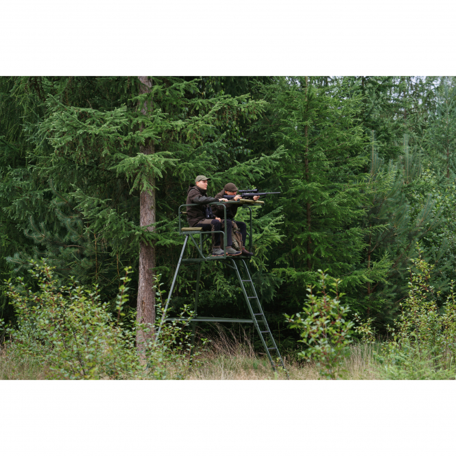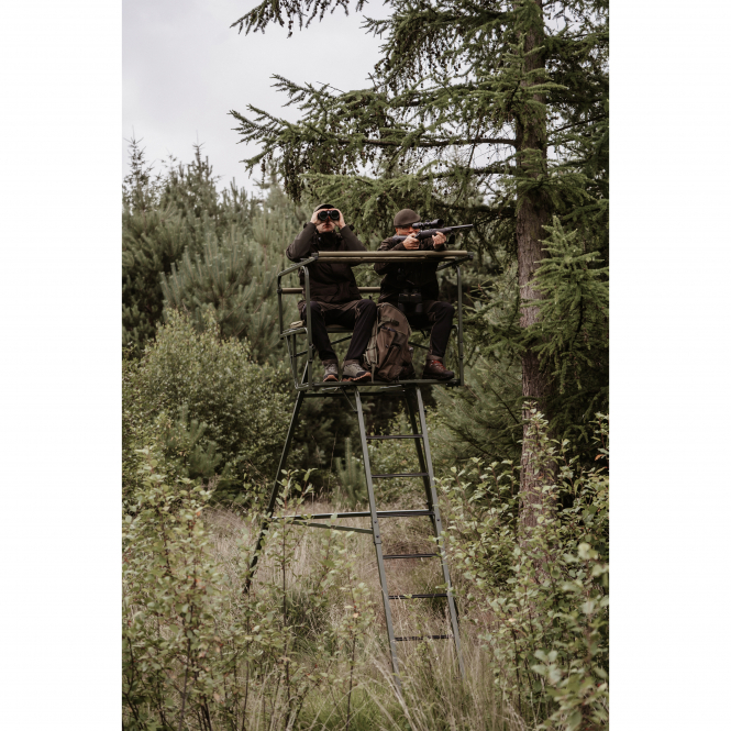 Dieser robuste Hochsitz in olivgrüner Farbe ist speziell für den sicheren und komfortablen Einsatz im Revier konzipiert. Mit einer Höhe von etwa 315 cm bietet er eine ausgezeichnete Übersicht und bleibt dabei mit einem Gesamtgewicht von ca. 45 kg angenehm transportabel. Die maximale Belastbarkeit liegt bei rund 270 kg, was ihn besonders stabil und zuverlässig macht. Der Sitz verfügt über eine gepolsterte Rückenlehne und Sitzfläche, die auch bei längeren Einsätzen hohen Komfort garantieren. Eine große Fußraste erleichtert das Sitzen ebenso wie das Abstützen, während der trittsichere Aufstieg für zusätzliche Sicherheit beim Betreten sorgt. Die integrierte Gewehrauflage ist besonders schonend und erlaubt eine optimale Handhabung der Waffe. Verstärkte Sicherheitsgelenke sorgen für maximale Stabilität und Langlebigkeit.