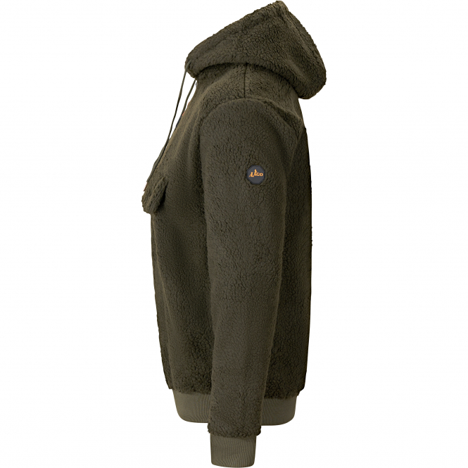 Der ideale Begleiter für kühle Tage. Hergestellt aus weichem, isolierendem Faserpelz, bietet er angenehme Wärme und hohen Tragekomfort, selbst bei längeren Aufenthalten im Freien. Die angeschnittene Kapuze schützt zuverlässig vor Wind und Wetter, während die große Bauchtasche mit Klettverschluss sowohl als Stauraum für kleinere Ausrüstungsgegenstände als auch zum Wärmen der Hände dient. Strapazierfähige Einfassungen an den Ärmelabschlüssen und am Saum sorgen für eine gute Passform und erhöhen die Haltbarkeit. Ob als wärmende Zwischenschicht unter der Jacke oder solo getragen. Dieser Hoodie überzeugt durch seine gelungene Kombination aus Funktionalität, Komfort und einem robusten Look. Farbe: oliv