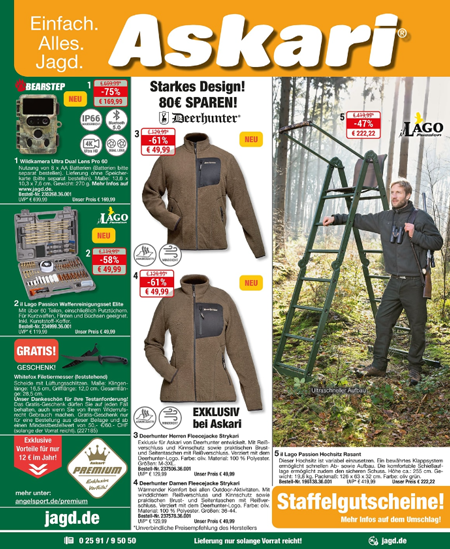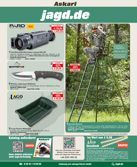 Jetzt überall bequem in unseren aktuellen Katalogen stöbern. Ob im Wartezimmer beim Arzt oder im Zug – Einfach Online-Kataloge öffnen und entspannt unsere Neuheiten und Angebote entdecken. Sie blättern gerne mal abends auf der Couch gemütlich in unserem Sortiment? Dann können Sie sich hier Ihr kostenloses Exemplar unseres über 280 Seiten starken Jagd-Katalogs für Zuhause sichern.