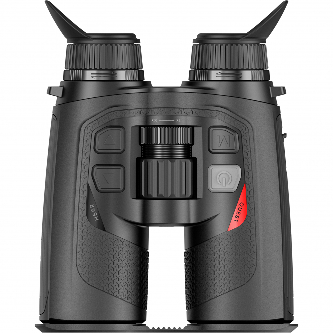 Das Quest H35R ermöglicht eine Erkennungsreichweite von bis zu 1800 Metern und ist mit einem verdeckt integrierten Laser-Entfernungsmesser ausgestattet, der präzise Messungen bis zu 1000 Metern erlaubt. Der verbaute 640×512 Pixel Sensor mit 12 μm Pixelabstand und einer NETD von ≤15 mK sorgt für eine besonders hohe Bildschärfe und Wärmeempfindlichkeit, sodass auch geringe Temperaturunterschiede zuverlässig erkannt werden.