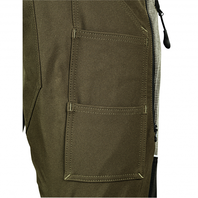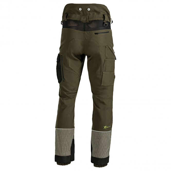 Eine Outdoorhose aus hochwertigen Materialien für maximale Robustheit und Komfort. Erfüllt kompromisslos professionelle Ansprüche. Extrem viel Bewegungsfreiheit und ein extrem geringes Gewicht, kombiniert mit robustem Cordura® und wasserdichtem sowie atmungsaktivem Oberstoff. Die darunterliegende RainTex® Membran sorgt für absoluten Nässeschutz. Diese Outdoorhose besitzt herausnehmbare Gamaschen und Schuhhaken, mit denen sie fest auf dem Schuh fixiert werden können. Dadurch wird ein Hochrutschen der Hose, z. B. durch Dornen und Gestrüpp verhindert. Mit extra langer Reißverschluss-Belüftung außerhalb des Gesäßbereichs. Seitentasche mit integrierter Smartphonetasche. Belüftungsgitter aus Cordura® am ganzen Hosenbund. Farbe: grün/schwarz.